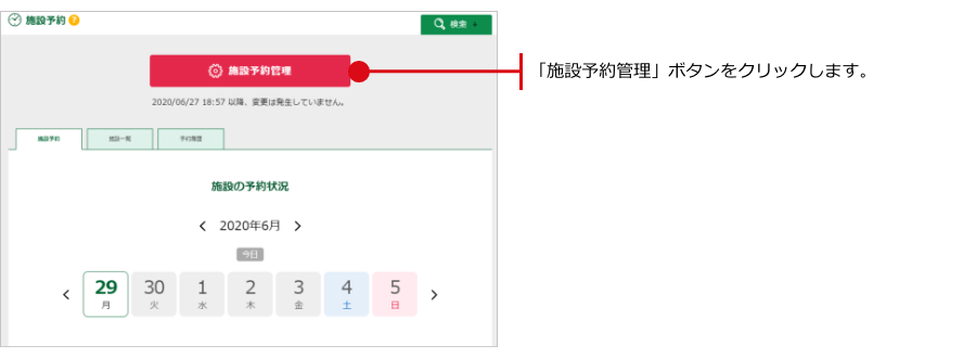 「施設予約」ページの「施設予約管理」ボタンをクリックします。