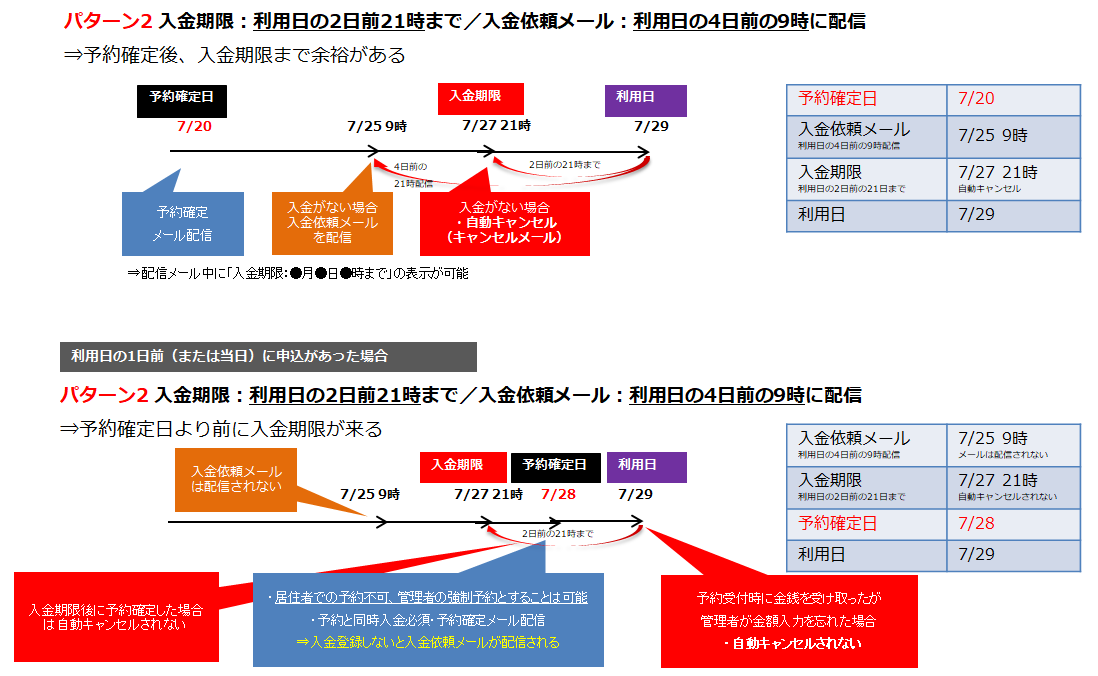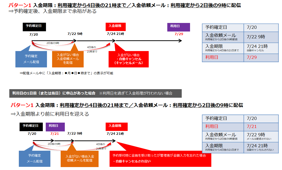 入金依頼メール・自動キャンセル設定パターン(管理者向け)