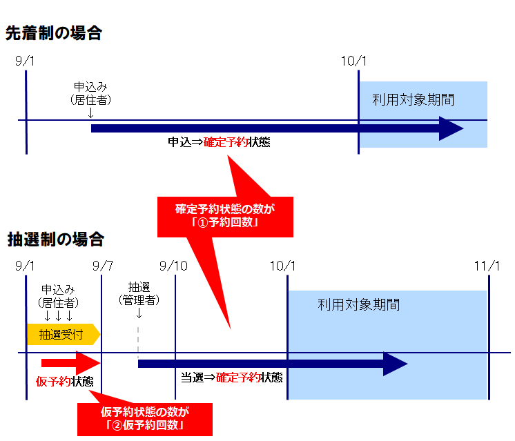 (先着順の場合は予約した回数、抽選の場合は当選して予約できた回数)
