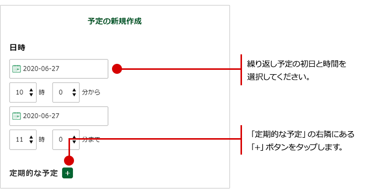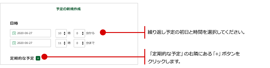 定期的に繰り返し発生する予定を新しく登録する手順をご案内いたします。